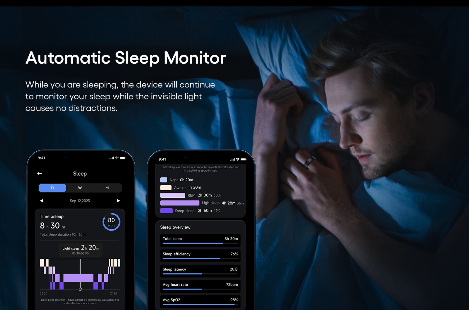 【Intelligent Sleep Tracker】: Your favorite sleep tracker is now wrapped around your finger. Monitor your falling asleep, waking up time, sleep quality through graphs. You can view daily sleep data in the App.